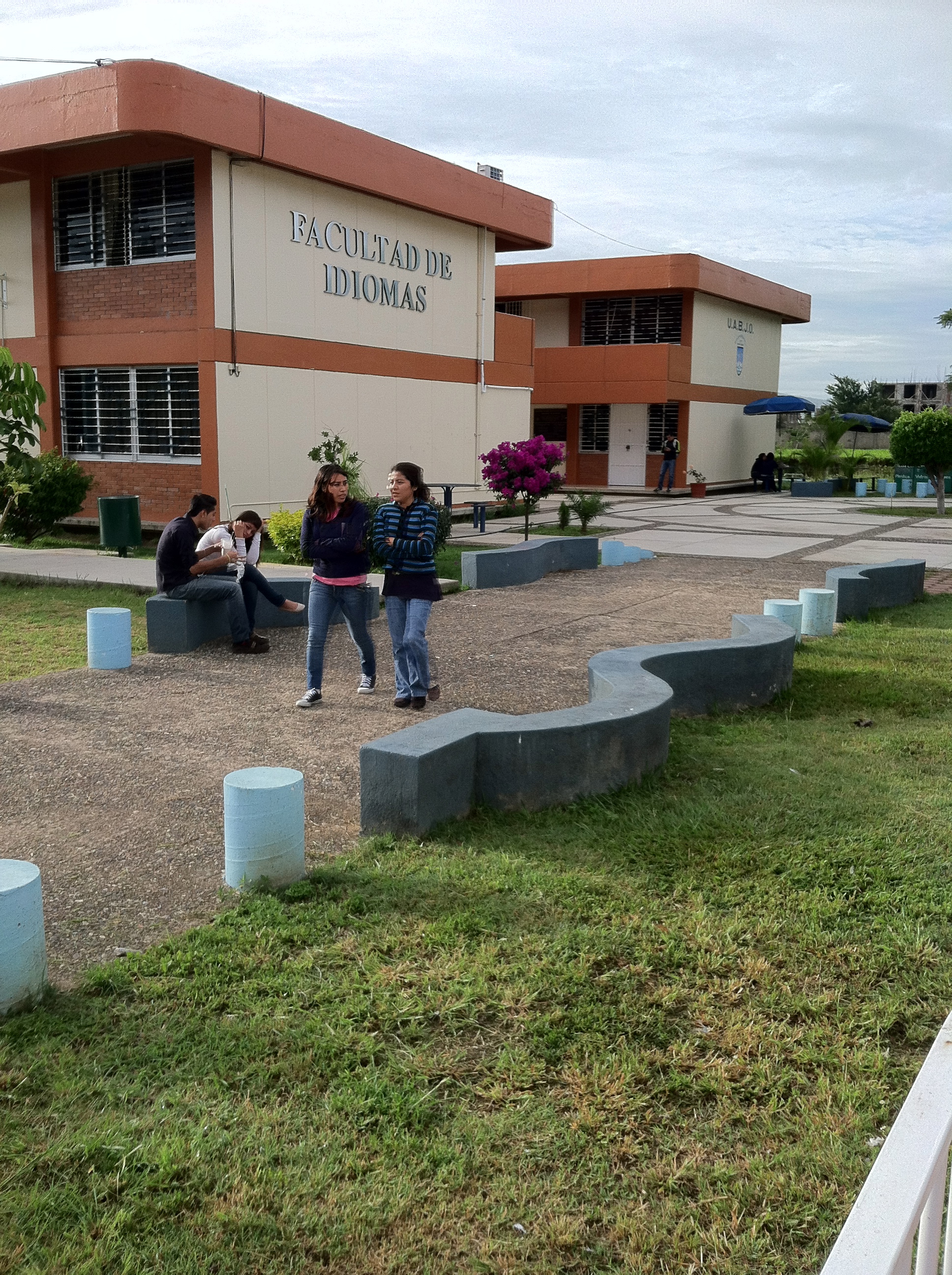 Today was another teaching day at Facultad de Idiomas at the Autonomous University Benito Juarez of Oaxaca – UABJO. I feel like I’m getting my bearings now—I know what street to wait on in the center near my home to find a “C.U.” (University City) bus which I now know doesn’t come nearly as often as other “centro” busses. I know what signs to look out for to get off the bus. I know the button to push to successfully stop and get off the bus. I know how to cross the carretera (highway) and where to walk through campus. Now I know that I must stick to that same blue covered pathway through campus to get to my department or else get caught by construction, mud, or gate blockages. I know where to buy snacks and lunch. I know so much that I am starting to feel I can really do this thing called being a professor (and mother and spouse) in another country.
